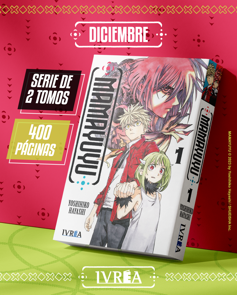 MAMAYUYU se publicó en las páginas de la famosa Shonen Jump entre finales de 2023 y mediados de 2025, recopilándose en 4 tomos. La primera serialización del autor logró captar la atención de destacados mangakas compañeros de la revista, como Tatsuki Fujimoto (Chainsaw Man, Look Back) y Gege Akutami (Jujutsu Kaisen), quienes no escatimaron elogios hacia la obra. Nuestra edición de la obra será en tomos dobles, compilando toda la historia en dos libros de 400 páginas en formato tankoubon. Ambos tomos se lanzarán en simultáneo en el mes de DICIEMBRE.
